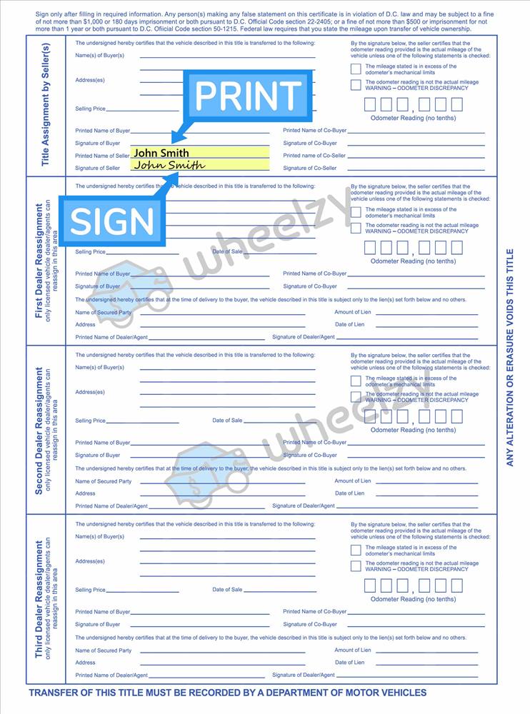How to Sign Your Title in Washington DC